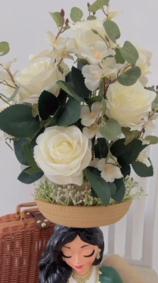 Celebrate elegance, culture, and heartfelt gifting with our Heritage Bloom, a unique handcrafted floral arrangement featuring a graceful girl in traditional attire holding a tray filled with beautiful flowers. This artistic piece blends heritage-inspired design with soft, feminine florals to create a truly memorable gift.